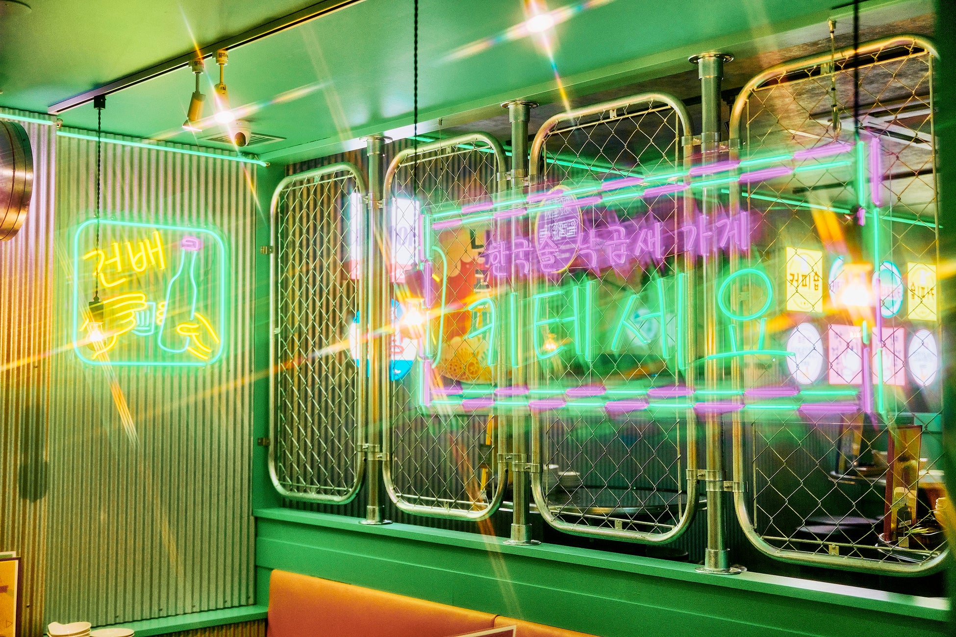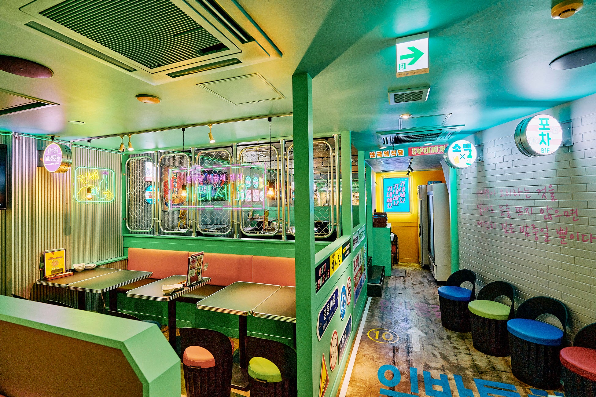 韓国の気軽な酒場をベースに、色とりどりのネオンや看板でSNS映えもばっちりな店内をよりアップデート!キテセヨカラーな空間で、時間を忘れて韓国カルチャーにどっぷり浸かっていただけること間違いなし!