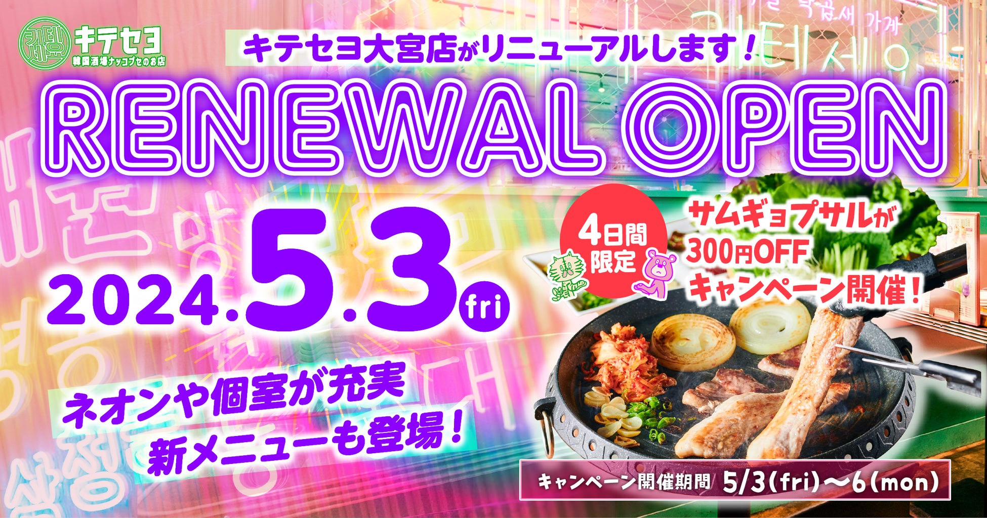 韓国カルチャーを五感で楽しめる『韓国料理ナッコプセのお店キテセヨ』大宮店が5月3日に大幅リニューアルオープン!5月3日~6日の4日間は定番メニューのサムギョプサルが300円OFFのキャンペーンも!