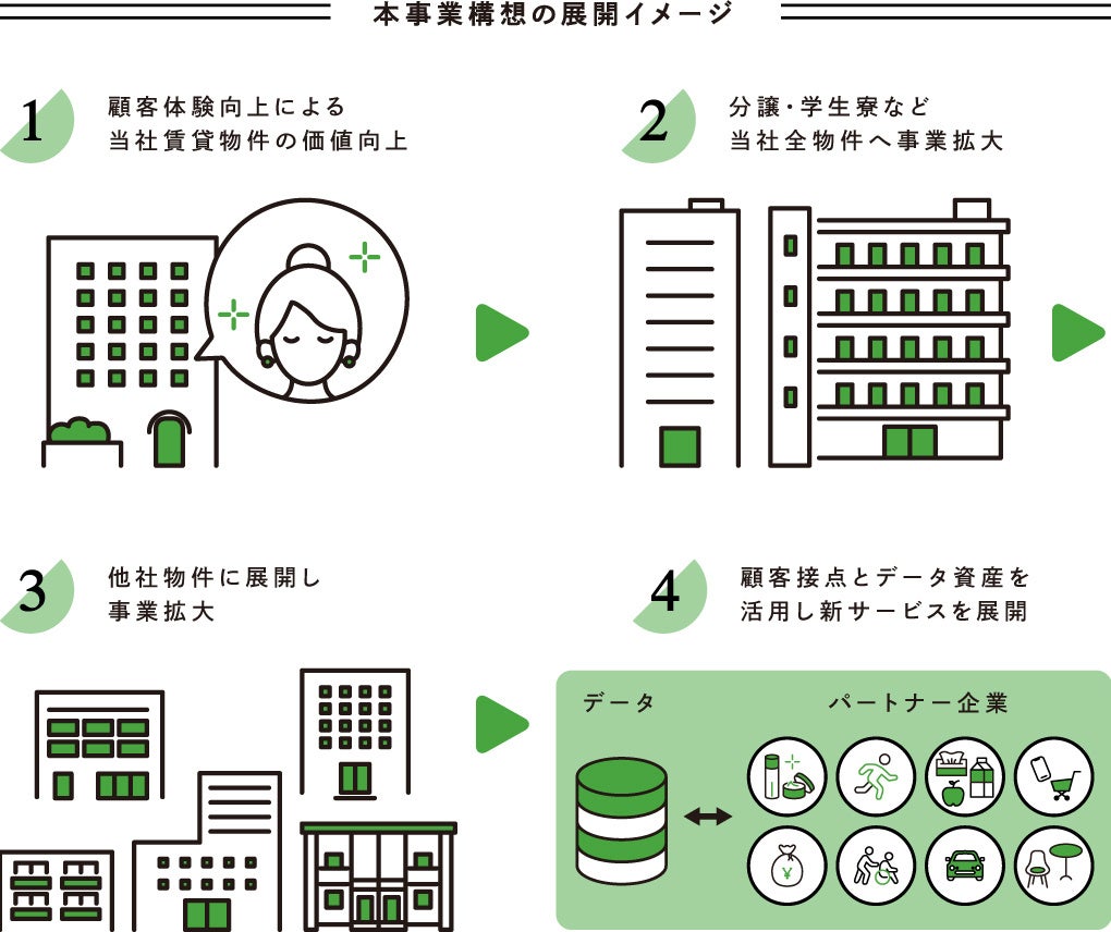 「キレイになる家プロジェクト」は、東急不動産が開発する物件価値の向上、顧客接点を活用した新たなサービス展開を狙い、既存資産とデータ資産、また他社資産とをつなぐことで新しい価値創造を実現し、住まいのデータを活かしてヘルスケア領域でのサービス展開を目指します。