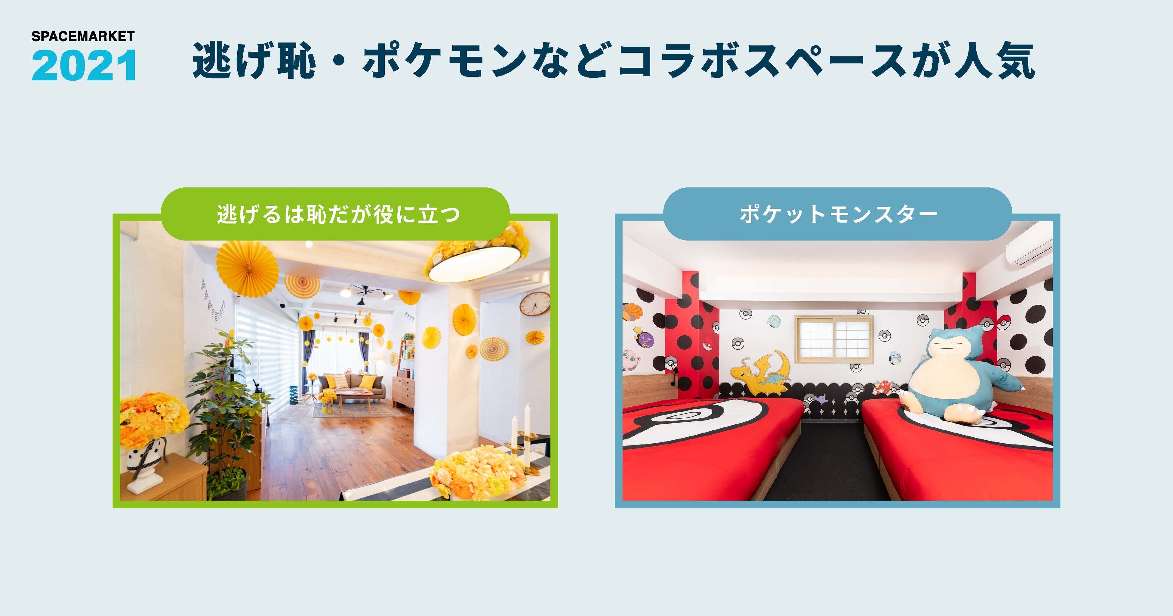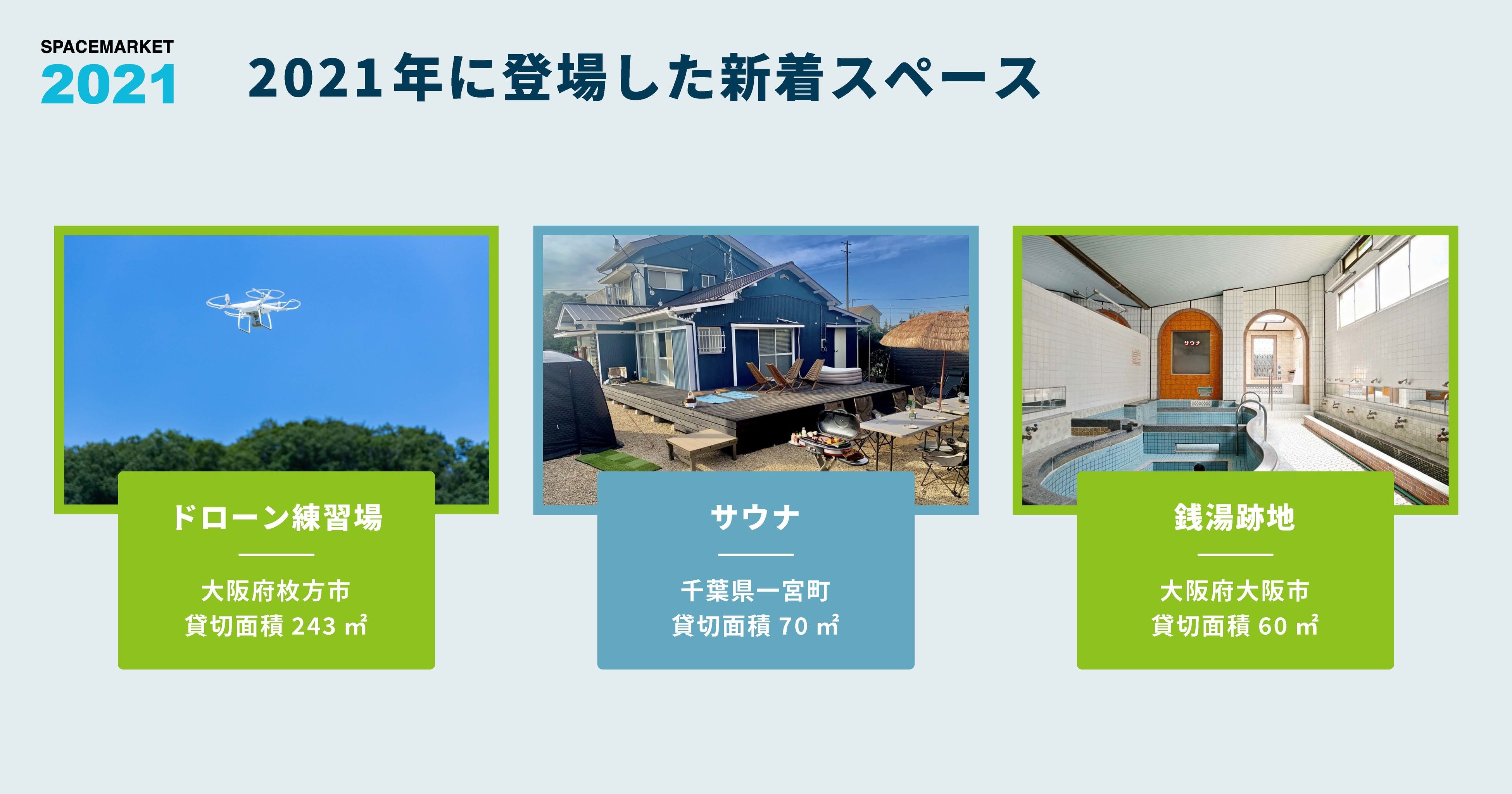 株式会社スペースマーケット(本社:東京都渋谷区、代表取締役社長:重松大輔、以下「スペースマーケット」)は、あらゆるスペースを貸し借りできるプラットフォーム「スペースマーケット」における2021年の利用動向をまとめた「スペースシェア・トレンド2021」を発表します。