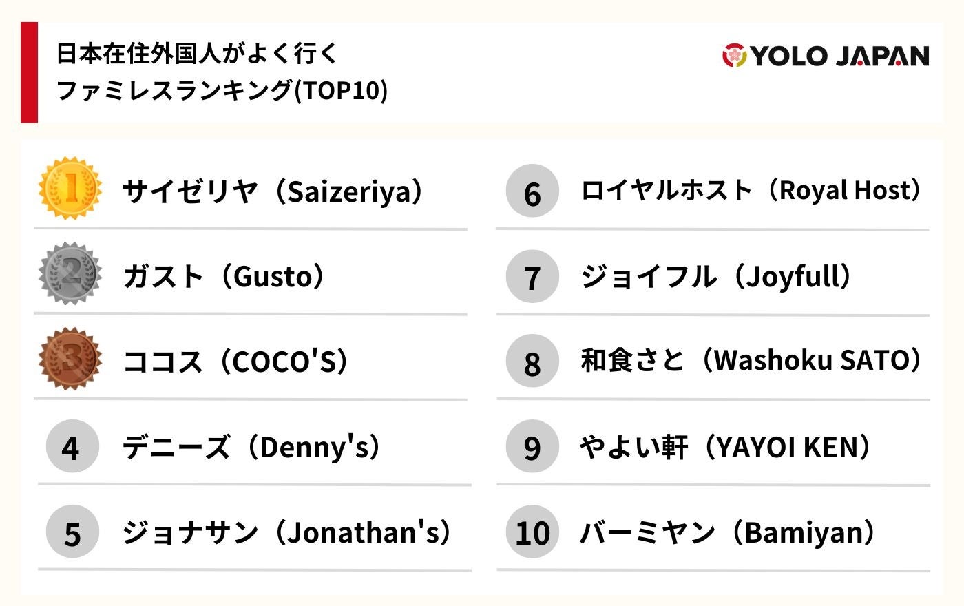 https://www.yolo-work.com/13541から「外国人がよく行くファミリーレストラン ランキング」の詳細をご覧いただけます。