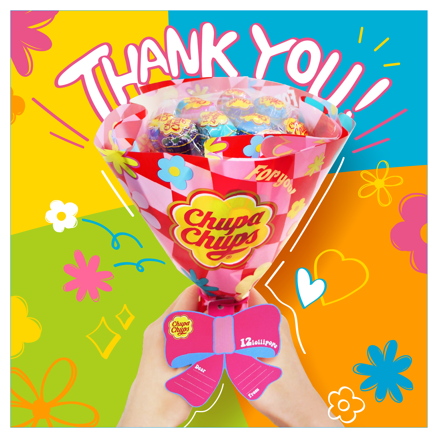 Chupa Chups for YOU!『チュッパチャプス フラワーブーケ』がデザインリニューアル!手軽に、家族や友達に贈るプレゼントとして最適!飾っても楽しめるカラフルな花束が1月24日より全国発売