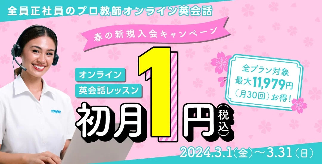 QQEnglishでは、みなさまの英語学習を応援するために新規入会 全プラン初月1円キャンペーンを開催します!