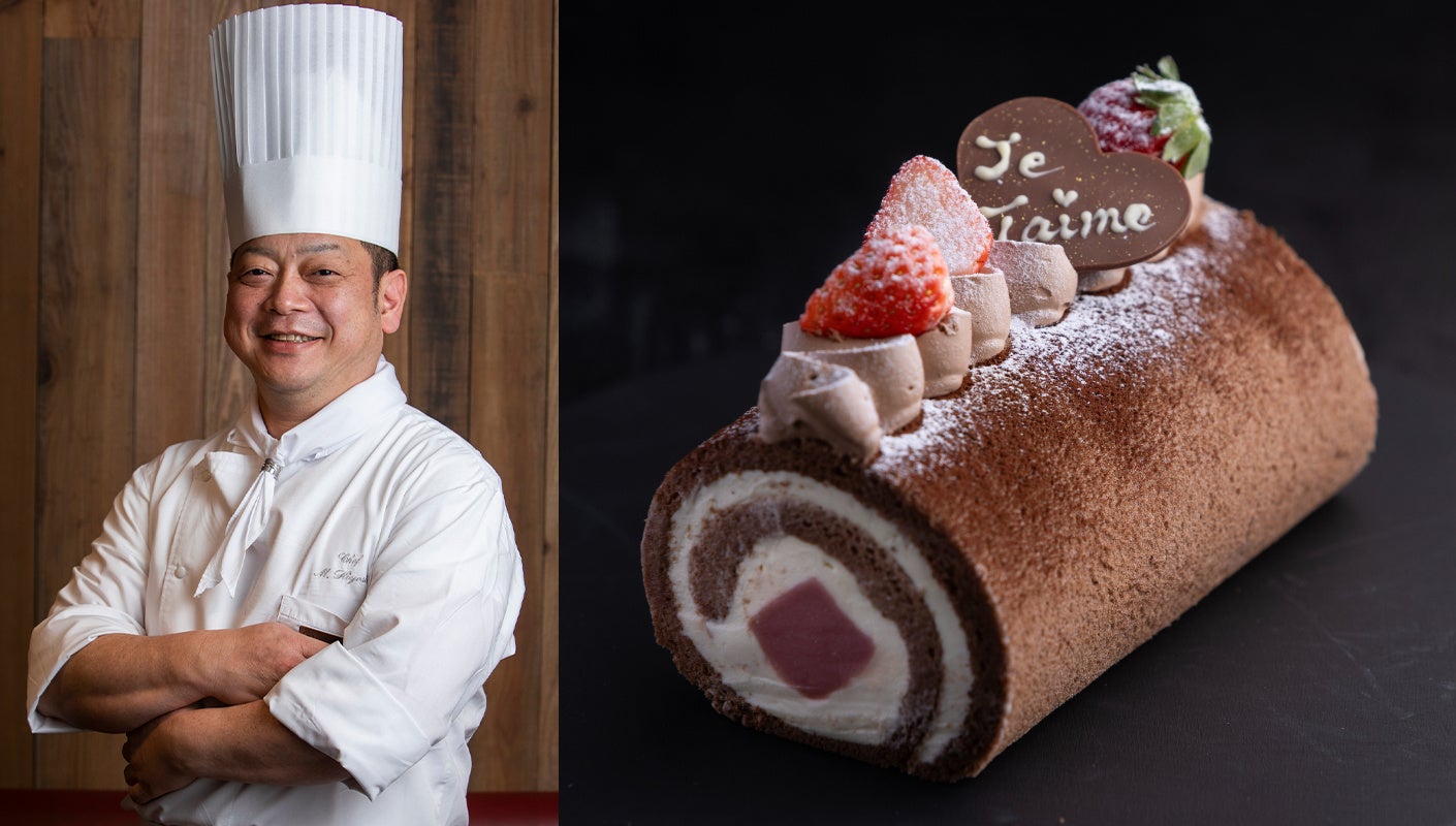 シェラトン・グランデ・オーシャンリゾートのエグゼクティブ シェフ・パティシエ日吉正人の名を冠した、「風待ちテラス」人気のロールケーキが、バレンタイン特別バージョンに。チョコチップ入りのマスカルポーネクリームと、いちごの生チョコをブラックカカオ風味のふわふわ生地でロールしました。