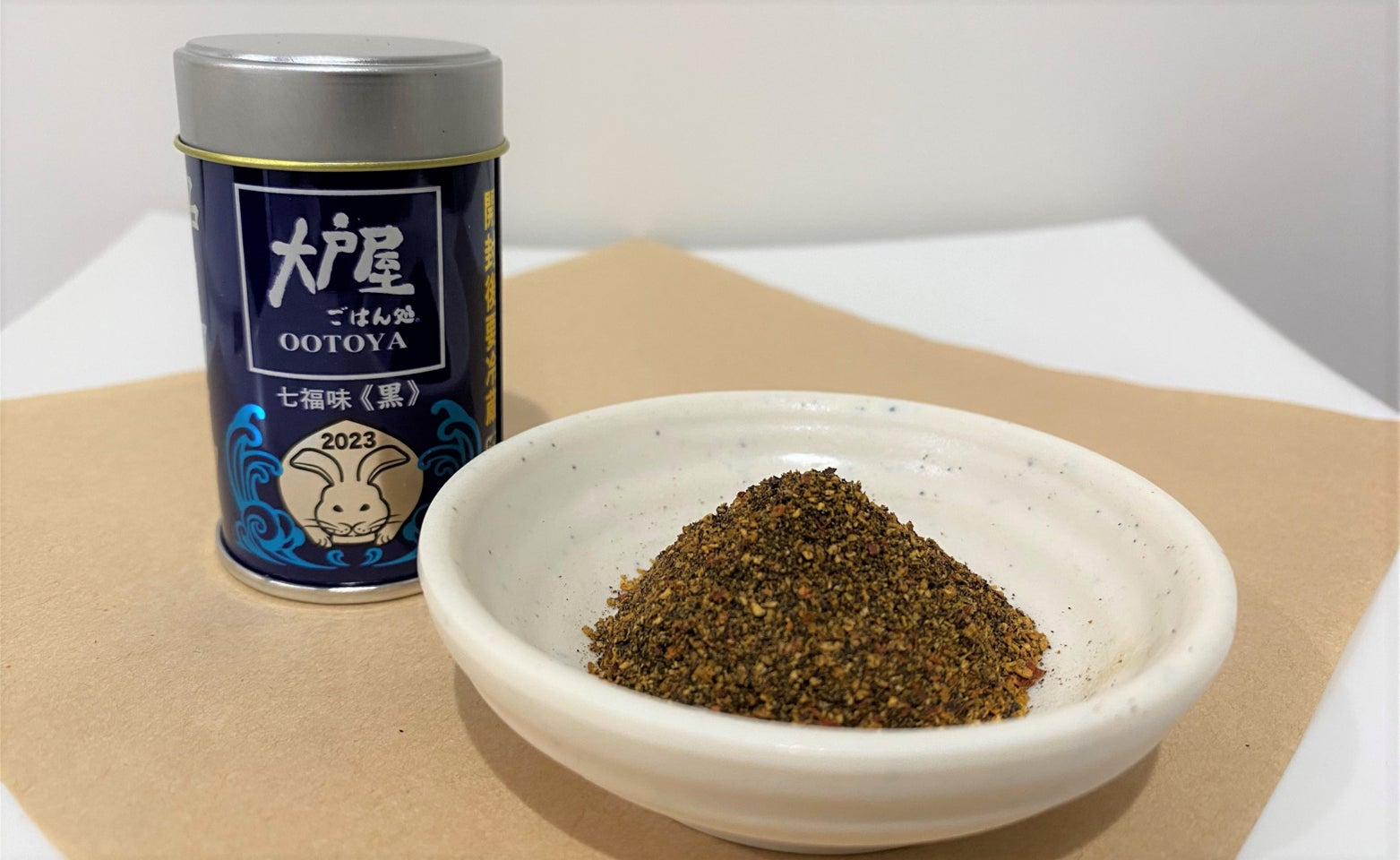 日本三大七味である長野の善光寺名物「八幡屋礒五郎」とコラボした大戸屋オリジナルデザイン缶の七味です。七福味「赤」と七福味「黒」が専用化粧箱に入った2個セットの干支をデザインしたこの時期ならではの限定商品です。お正月だけの限定コラボ商品で「まんぷく袋」販売期間中のみ、大戸屋ごはん処店頭にて単品販売も行います。