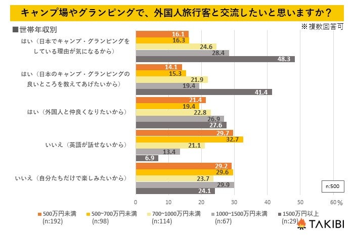【質問:キャンプ場やグランピング施設で、外国人旅行客と交流したいと思いますか?】