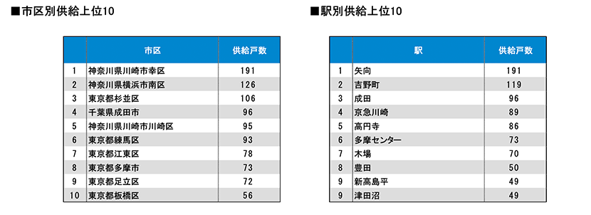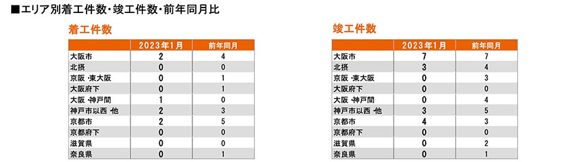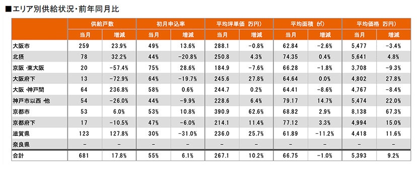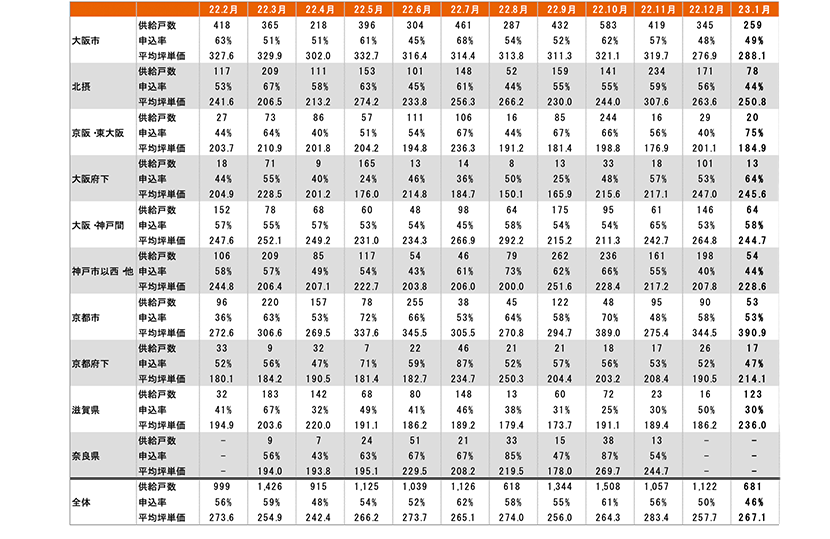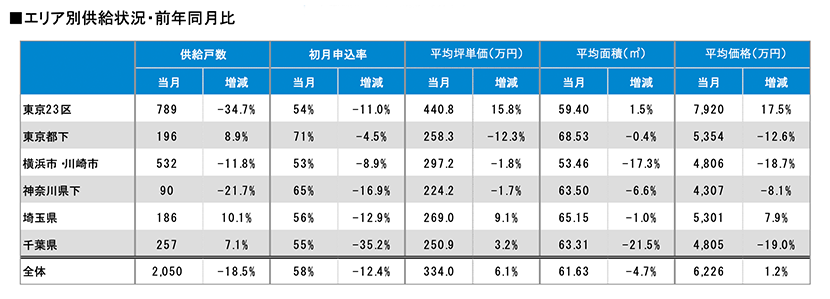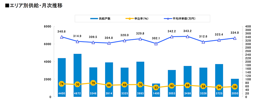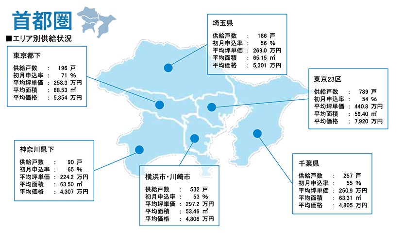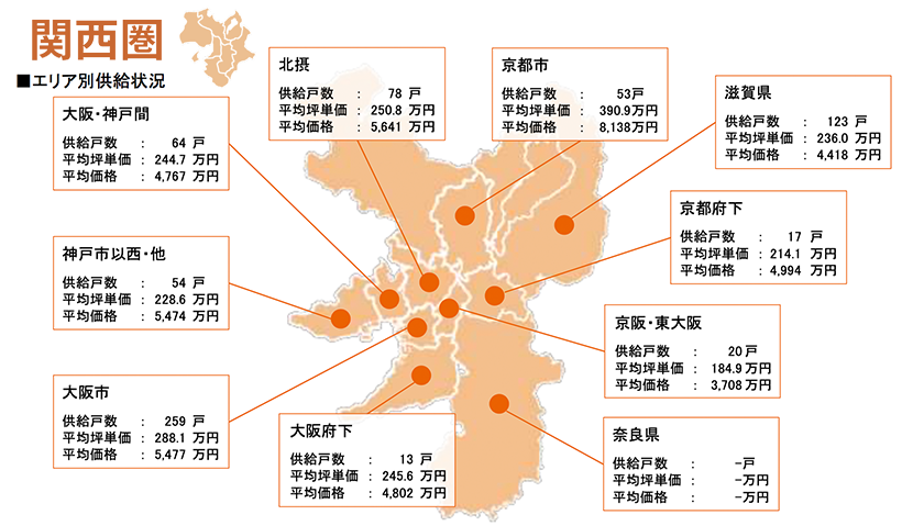集計対象エリアは首都圏及び関西圏で、それぞれのエリア別相場情報、需給動向、着工件数等を集計しました。
