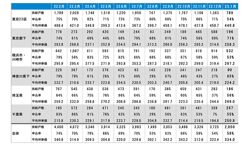 月例新築マンション動向発表~一都三県で平均坪単価6.1%上昇(2023年1月度 分譲実績)|2023年4月号~
