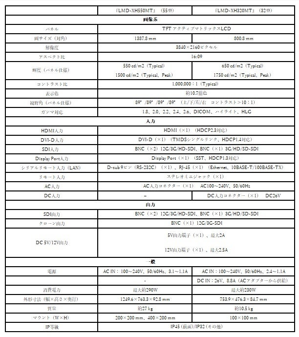 高輝度・高コントラストを実現するHDR信号に新たに対応細部までクリアに映し出す、医療用の3D対応4K液晶モニター2機種発売
