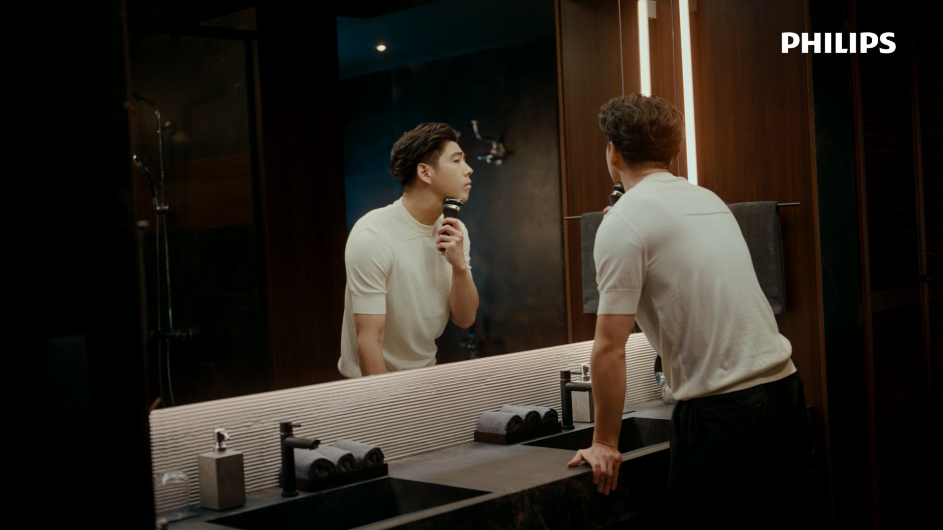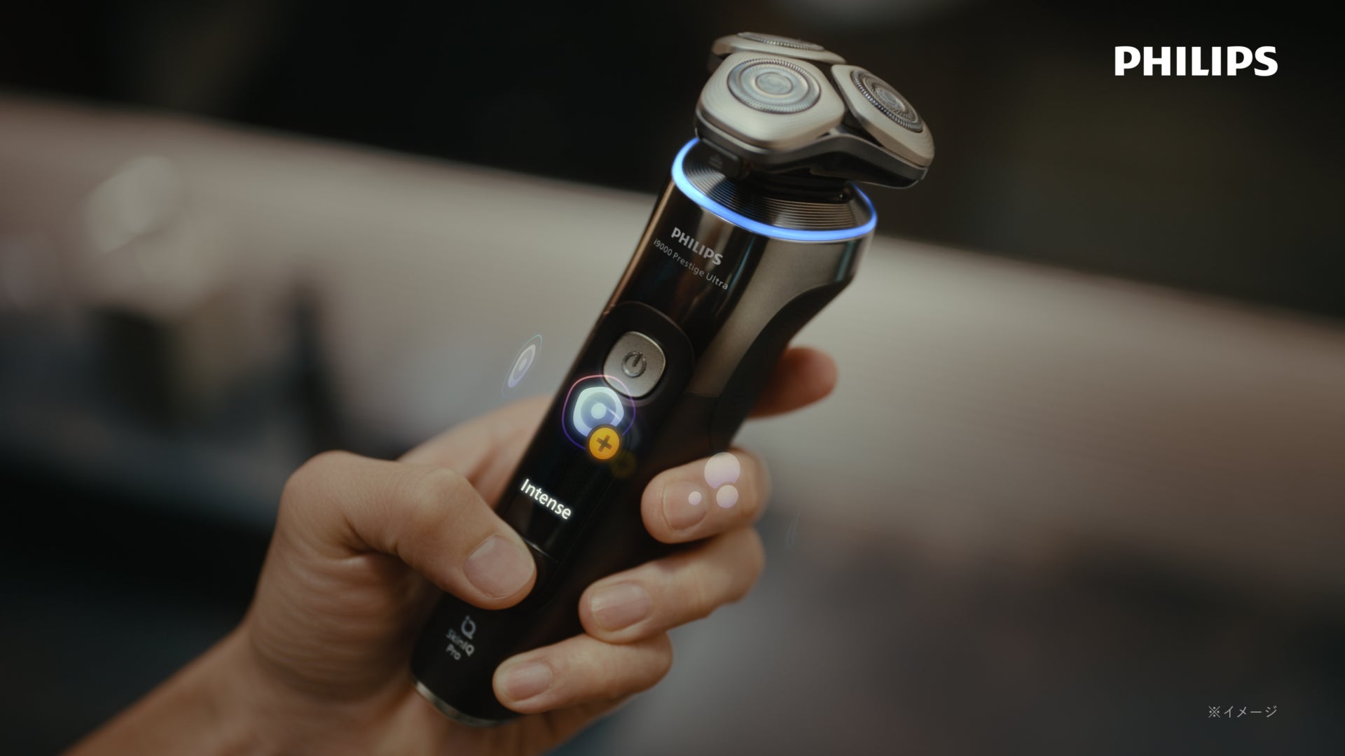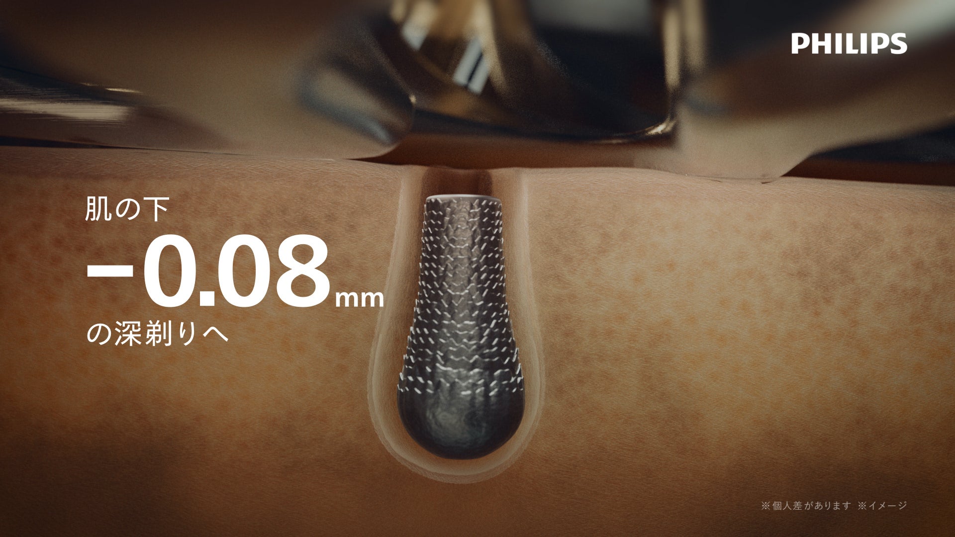 肌下₋0.08mmというフィリップス電動シェーバー史上最高[2]の深剃りと、肌へのやさしさ、剃りにくい部分にも密着する360-Dフレックスヘッドなどの機能が、ダイナミックかつ洗練されたビジュアルで紹介されます。
