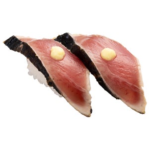 宮城県産かつおを使用。表面を香ばしく炙り、内側はしっとりとした食感で、さっぱりしながらも上品な脂のりが感じられます。