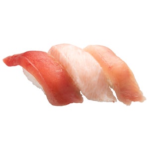 (左から)大切りまぐろ、本鮪大とろ、上びんちょう