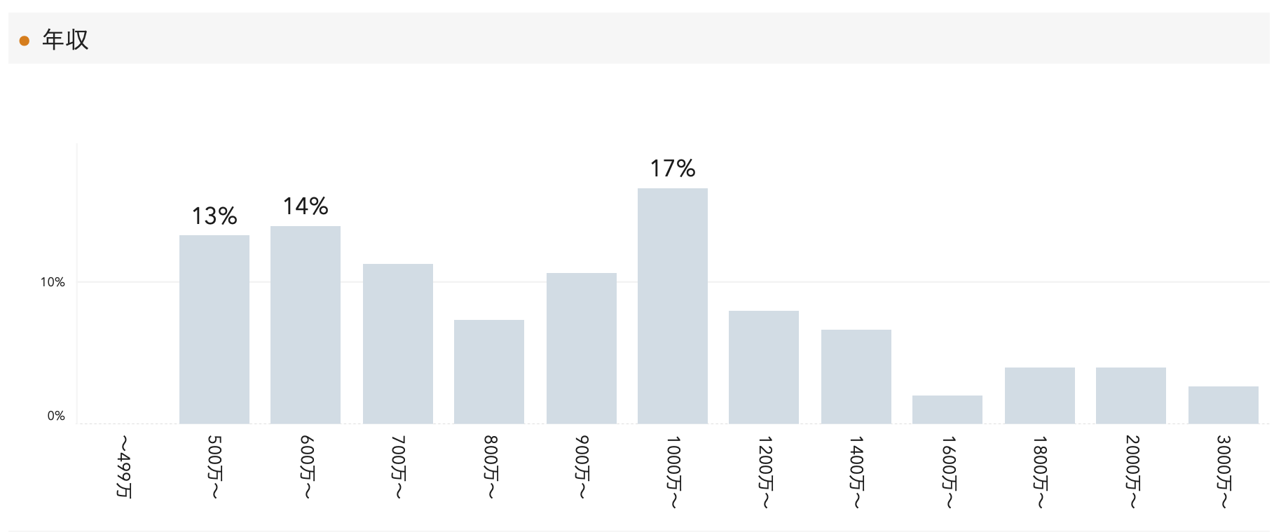 - 成約顧客の年収帯のうち、1,000万〜1,200万円未満の割合が17%で過去最高を記録(前月比+8pt)