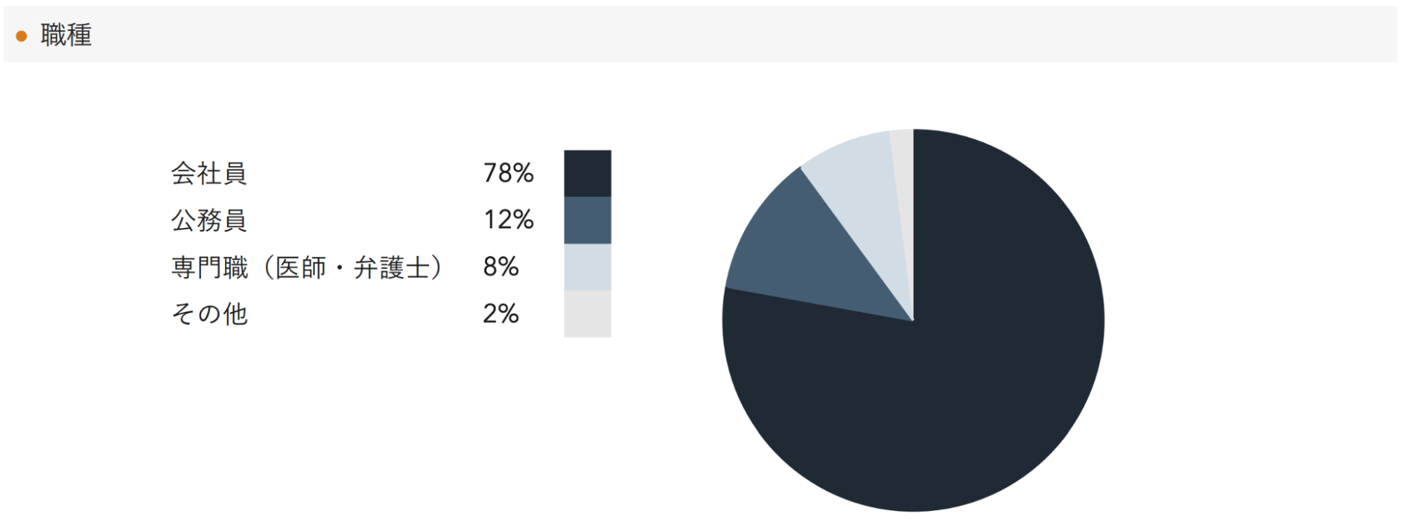 成約顧客の職種は、会社員が78%(前月比10ptダウン)、続いて公務員の12%(前月比6ptアップ)、専門職(医師・弁護士)の8% (前月比5ptアップ)となっています。公務員の割合は、2021年度における最高値を記録しております。