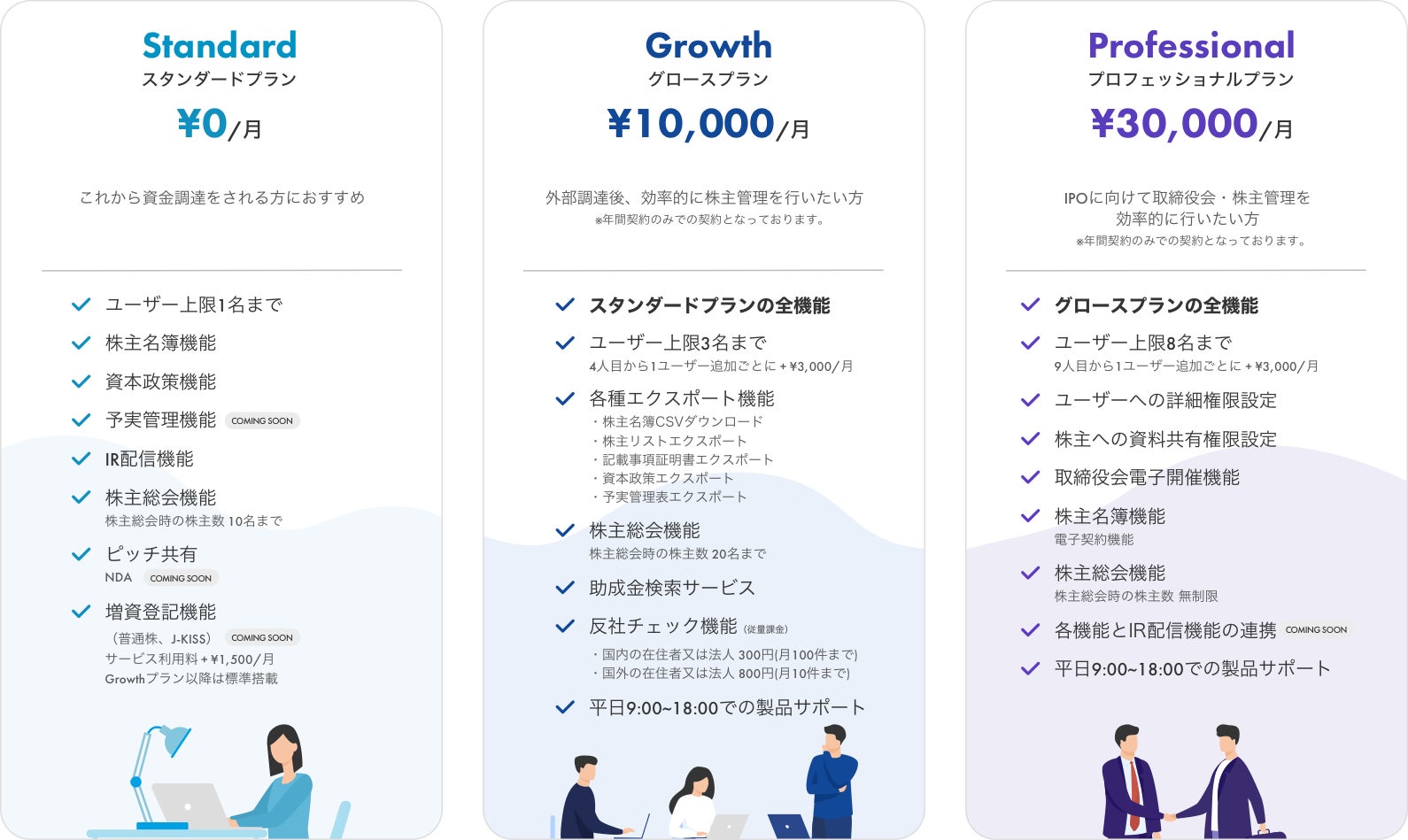 また、助成金・補助金検索サービス並びに、助成金申請ステータス管理機能は、FUNDOOR グロースプランまたはプロフェッショナルプランをご契約の企業様がご利用いただけます。新規投資家ステータス管理機能は、スタンダードプランにて引き続きご利用頂くことが可能です。