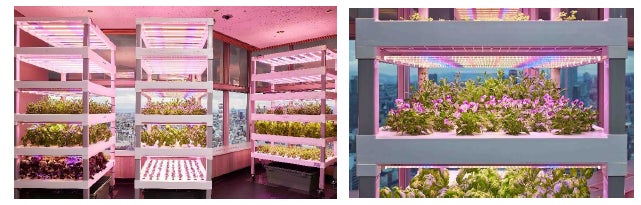 このThe Sky Farmで育った農薬不使用の新鮮で安全な野菜やハーブ類は、収穫後ホテル内レストランにて提供いたします。この取り組みにより、農作物の輸送が不要となることによる二酸化炭素排出量の削減、生態系に影響を与える農薬の排除、立体装置での栽培による農地面積の削減、収穫頻度の向上など、様々な効果、そして地域社会への貢献が可能であると考えております。