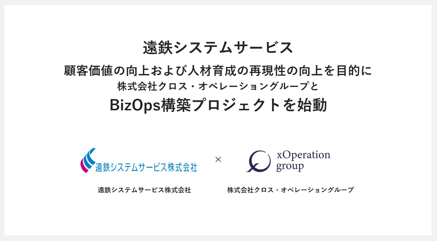 BizOps専門カンパニーとして、先端技術の業務(Ops)融合を強みとし、生成AIを活用した業務改善支援およびBizOps/xOps構築支援を行う株式会社クロス・オペレーショングループ(東京都千代田区、代表取締役:田中 亮大、以下XOP)は、ICT戦略の導入から運用・保守サポートに至るまでワンストップで支援する遠鉄システムサービス株式会社(静岡県浜松市、代表取締役社長:佐野 智史、以下ESS)と共に、同社の顧客価値の向上および人材育成の再現性を高め事業成長を加速させることを目的とし、BizOps構築プロジェクトを始動したことをお知らせします。