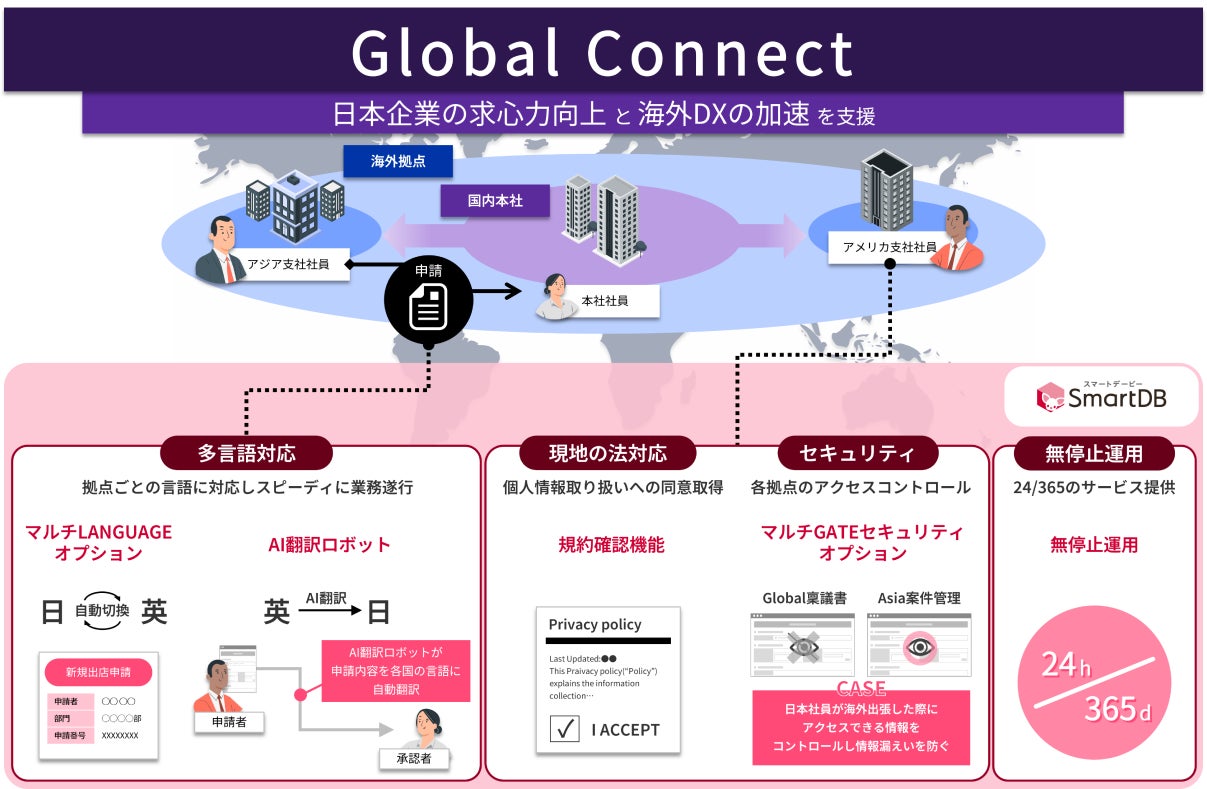 【日の丸大企業】の海外DXを強力に支援する「Global Connect」を発表 2024年内にSmartDB(R)を主軸とした機能・オプション群を順次リリース