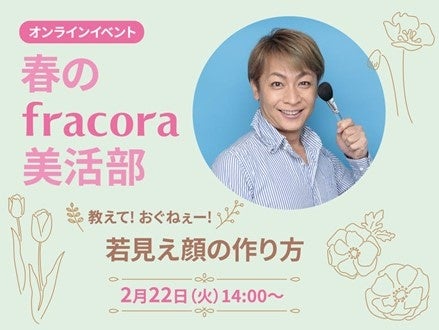 生命科学を活用した先端美容を追求し、エイジングケア美容液No.1※1ブランドの「fracora(フラコラ)」は、ヘアメイクアップアーティストのおぐねぇー(小椋ケンイチ)さんを招いた無料オンラインイベント“春のfracora美活部”をライブコマース「fracora LIVEショッピング」内で、2022年2月22日(火)14:00より開催いたします。