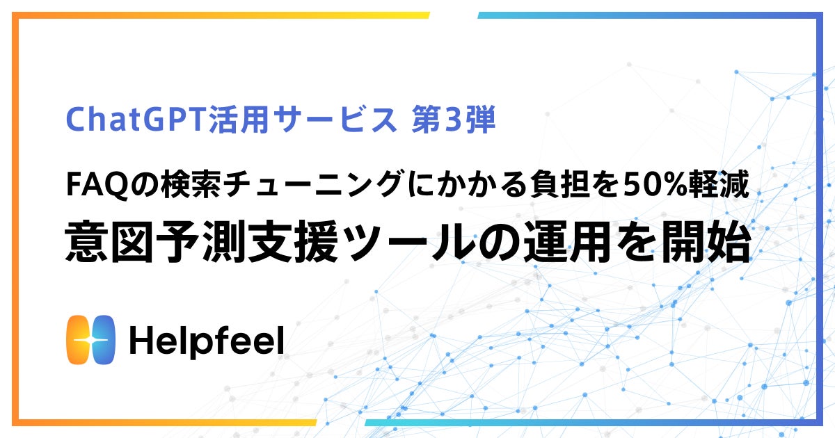 HelpfeelがChatGPTを活用。要点を抽出しFAQの検索精度の向上を支援する意図予測支援ツールの運用を開始。FAQの検索チューニングにかかる作業負担を50%軽減する