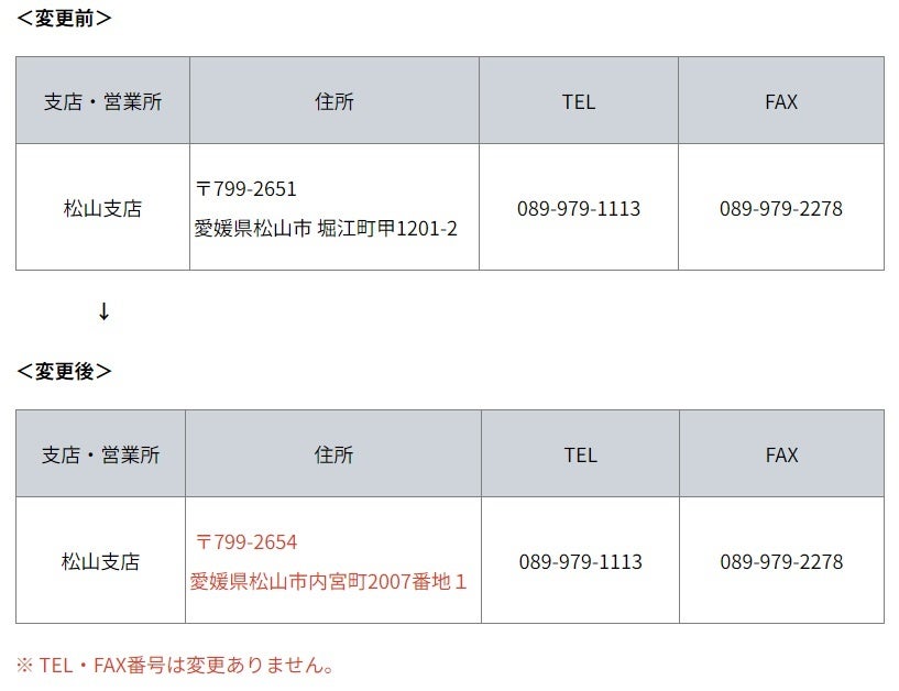 【三浦工業株式会社】事務所移転のお知らせ(松山支店)