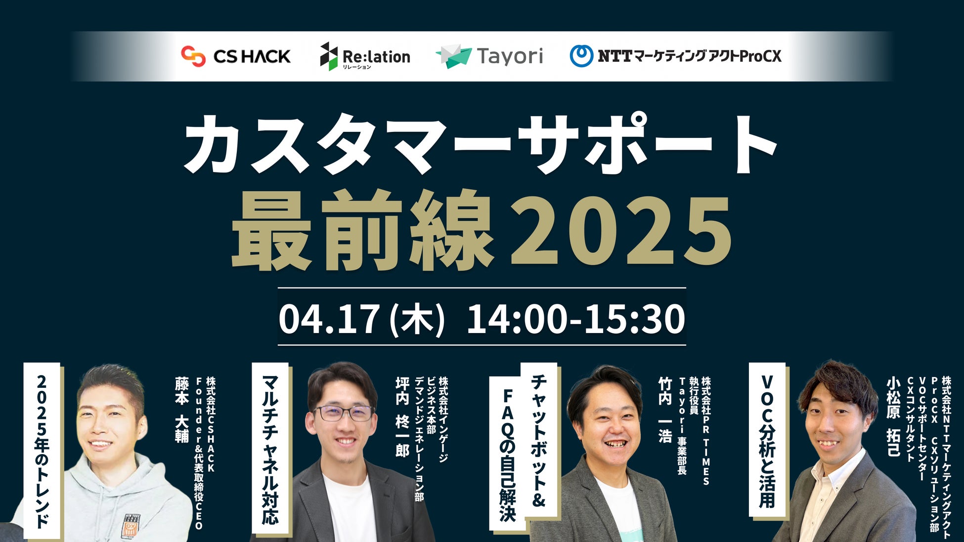 顧客対応クラウド『Re:lation(リレーション)』を開発・提供する株式会社インゲージ(本社:大阪府大阪市、代表取締役社長:和田 哲也)は、2025年4月17日(木)にオンラインセミナー「カスタマーサポートの最前線 2025」を開催いたします。