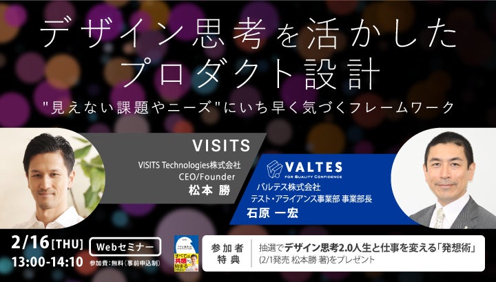ソフトウェアのテスト・品質向上支援サービスを提供するバルテス株式会社(本社:大阪市西区、東京都千代田区、代表取締役社長:田中 真史)は、VISITS Technologies株式会社(本社:東京都千代田区、代表取締役:松本 勝)と共催で、2023年2月16日(木)に無料セミナー「デザイン思考を活かしたプロダクト設計」を開催いたします。