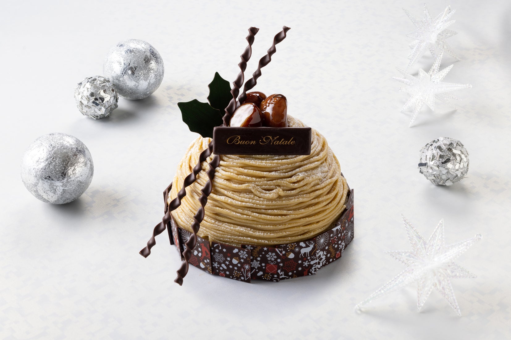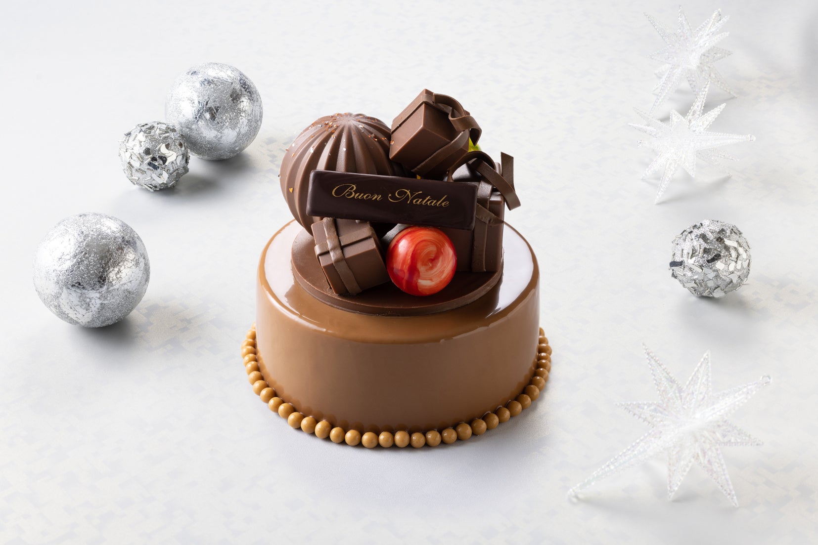 ホテルオリジナルのチョコレート「Grande H」をふんだんに使った、多層的な味わいが魅力の濃厚な味わいの新作ケーキ。コーヒーブリュレにパッションフルーツとオレンジのジュレ、キャラメリゼしたヘーゼルナッツやジャワペッパー(黒胡椒)などシェフのこだわりが詰めこまれた6種類の階層でつくり上げます。ケーキでは珍しい黒胡椒の香りやさまざまな食感、味わい、そして奥深さが感じられるお酒にも合う大人のためのクリスマスケーキです。