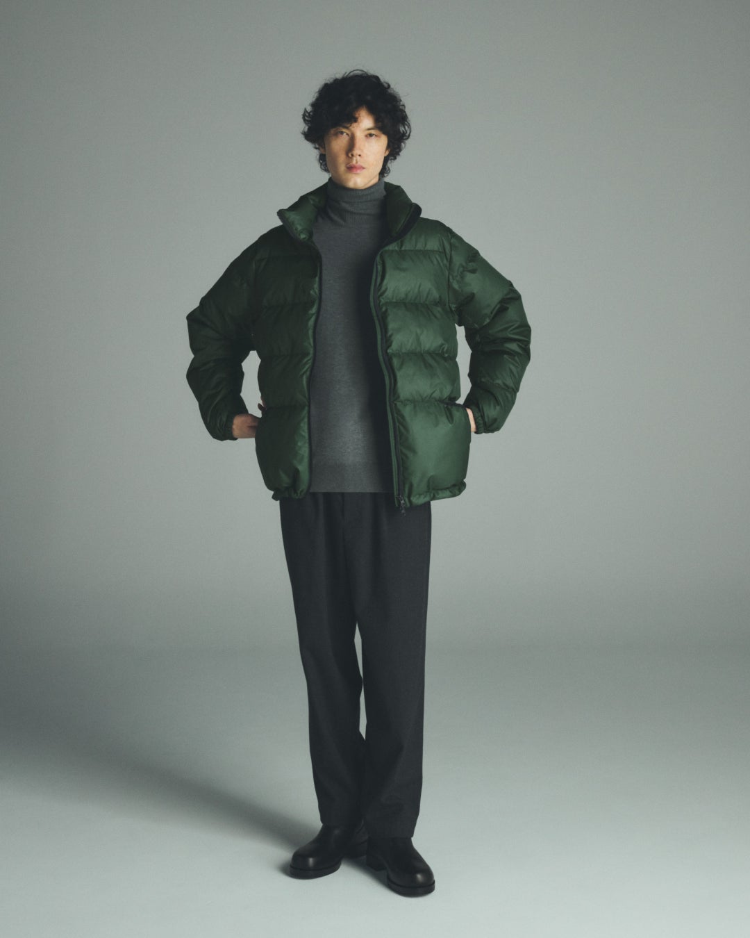 ・ジャケットの上から合わせても裾が出にくいレングス、 着ぶくれしづらいパターン設計により、美しいシルエットに