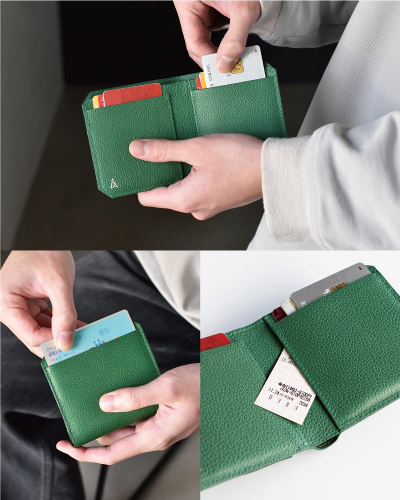 キャッシュレス時代の財布がよりコンパクトさを追求していく中で、本当にお客様が使いやすいものなのか?を繰り返し問いかけながら、タバラットの新しい二つ折り財布が完成しました。
