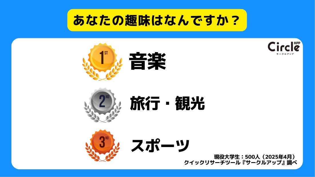 【Z世代のホンネ調査】現役大学生の4人に3人が「現在、お金や時間をかけるほどの趣味がある」と回答。現役大学生に人気の趣味は1位「音楽」2位「旅行・観光」3位「スポーツ」。
