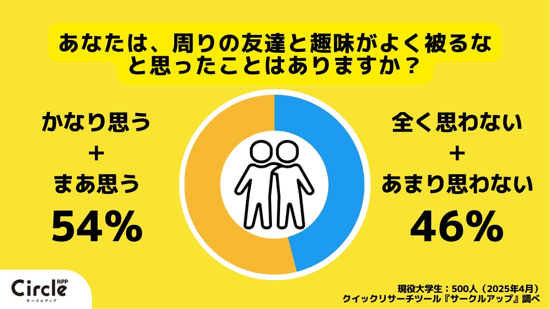 ■現役大学生の過半数が「周りの友達と趣味がよく被ると感じたことがある」と回答。