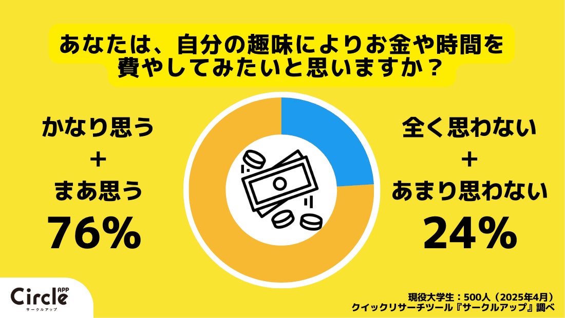 ■現役大学生の76%が「自分の趣味に、よりお金や時間を費やしてみたい」と回答。