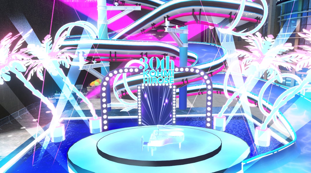 今年デビュー30周年を迎える広瀬香美のステージをご本人のメタバースへの強い思いをもとに、急遽ご用意しました。初めてのモーション撮影にも挑戦。ステージでは、「promise」の楽曲にあわせて本人アバターがピアノを使って演奏する姿を間近で見ることができます。