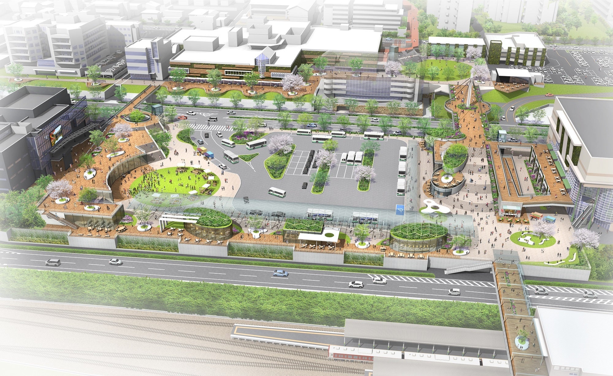 これからの50年を見据えたリニューアルの第一歩として、まちの玄関口である近鉄高の原駅前広場の再整備を計画しており、12月7日(水)、社会実験として再整備後の駅前広場を体感していただきます。