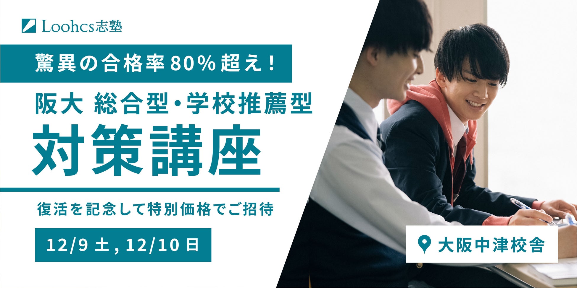 驚異の合格率80%超え。好評だった「阪大 総合型・学校推薦型 対策講座」が復活。復活を記念して特別価格でご招待。