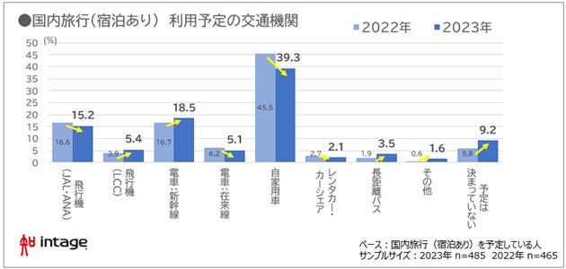「ようやく夏休みが戻ってきたのかな」とデータを眺めて思いました。振り返れば年末・年始、お花見、さらにはGWと人の動きは堅調に回復に向かっていましたが、この夏休みも「昨年よりも予算を増やして帰省や旅行を!」という気運が高まっているようです。とは言え、海外旅行については回復途上とも言える状況で、その理由や背景も調査結果から垣間見られました。国内旅行は、コロナ禍で人気だった自家用車が減り、公共の交通機関へのシフトが確認できますが、一方でLCCや長距離バスの利用意向が増え、物価高による節約志向が映し出されていますね。「移動手段などは節約しつつホテルや旅先での食事やイベントは満喫したい」そうしたメリハリの利いた夏休みになりそうです。