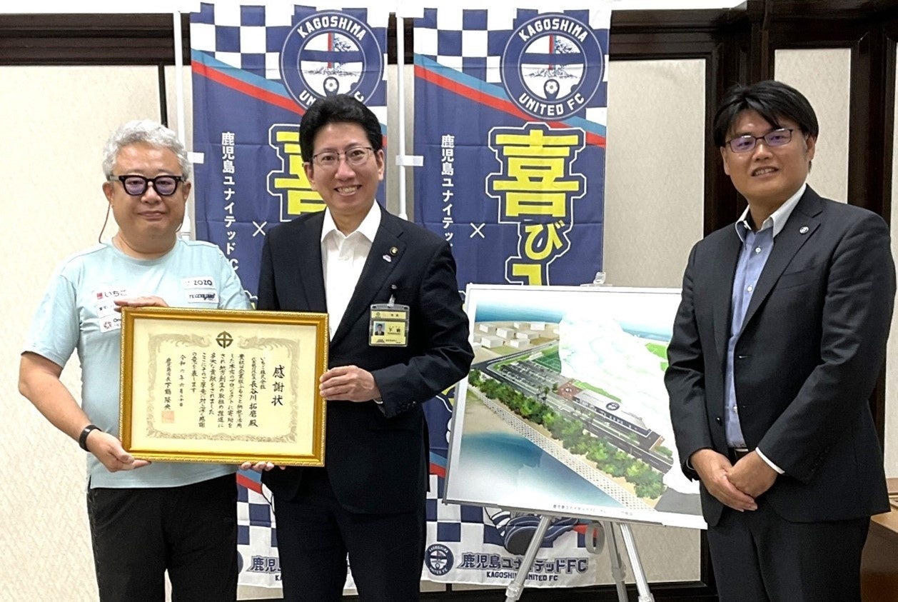 いちごは、2019年からJリーグのトップパートナーに就任、2021年から鹿児島市(市⻑:下鶴隆央)の活性化に向けた取り組みに関わっており、鹿児島市が第2期総合戦略に位置付けている「鹿児島ユナイテッドFCトレーニング施設整備等支援事業」に対して地方創生応援税制(企業版ふるさと納税)に関わる寄付を2年連続で実施し、昨日、鹿児島市より感謝状を贈呈されましたので、ご報告いたします。