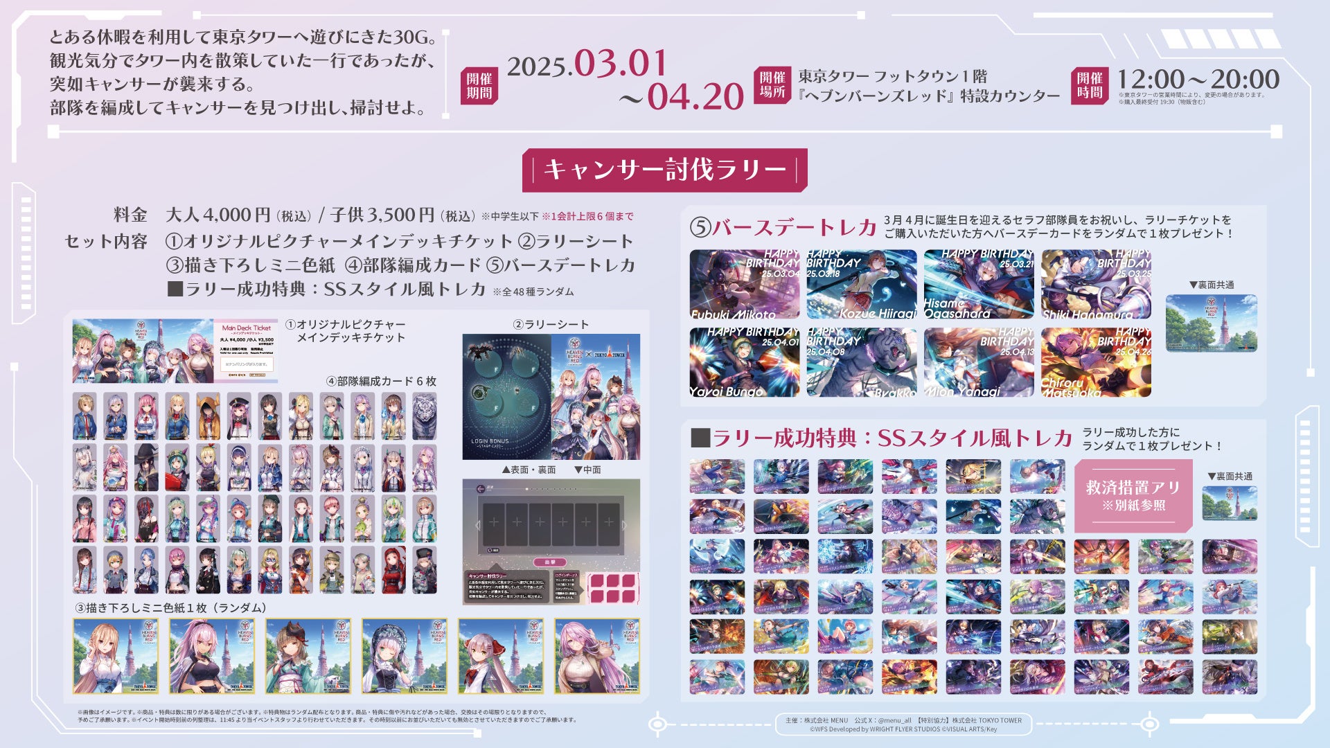 本イベントでは、第30G部隊のメンバーと共に東京タワーを巡りながら、突如襲来したキャンサーを討伐するミッションが展開されます。さらに、イベント限定のオリジナル特典付き入場チケットや、描き下ろしイラストを使用した豪華グッズもご用意。
