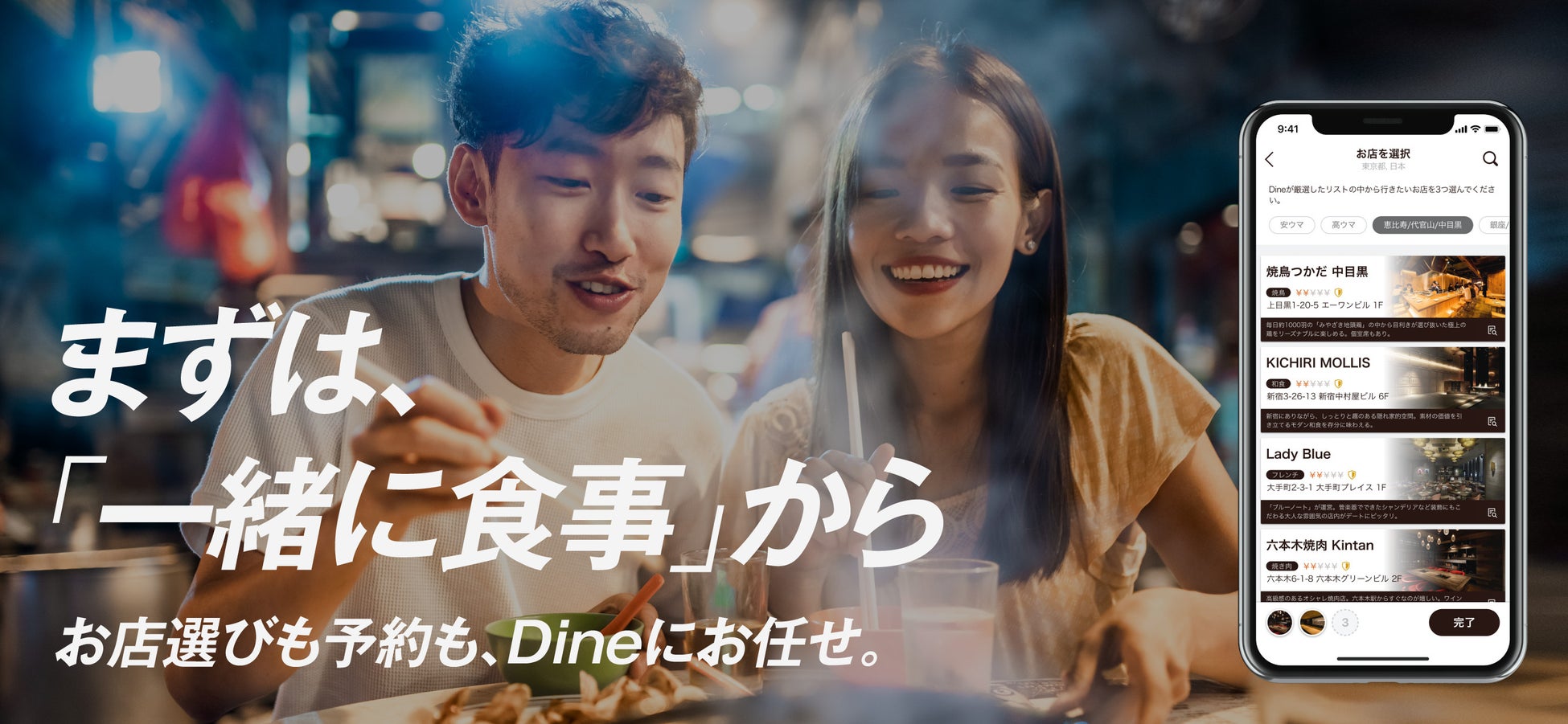 緊急事態宣言後には飲食店を応援するキャンペーンや飲食店の代わりに「映画」デート、過去には複数の施設とコラボレーションを実施。また、付き合う前の「初デートで行くべきレストラン」を表彰する日本初の賞「ダインアワード」の主催もしています。