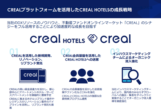 今後は、より需要の高まるホテルアセットについて、不動産の側面のみならずホテル自体の運営にも関わることで不動産利益のみならずオペレーション利益の獲得も図ります。また、グループ内で一貫したホテル事業のバリューチェーンを構築し、グループ事業間でのシナジー効果を高めながら質の高いホテルアセットの供給を通じて、投資家の皆さまにより一層魅力的な商品を提供してまいります。