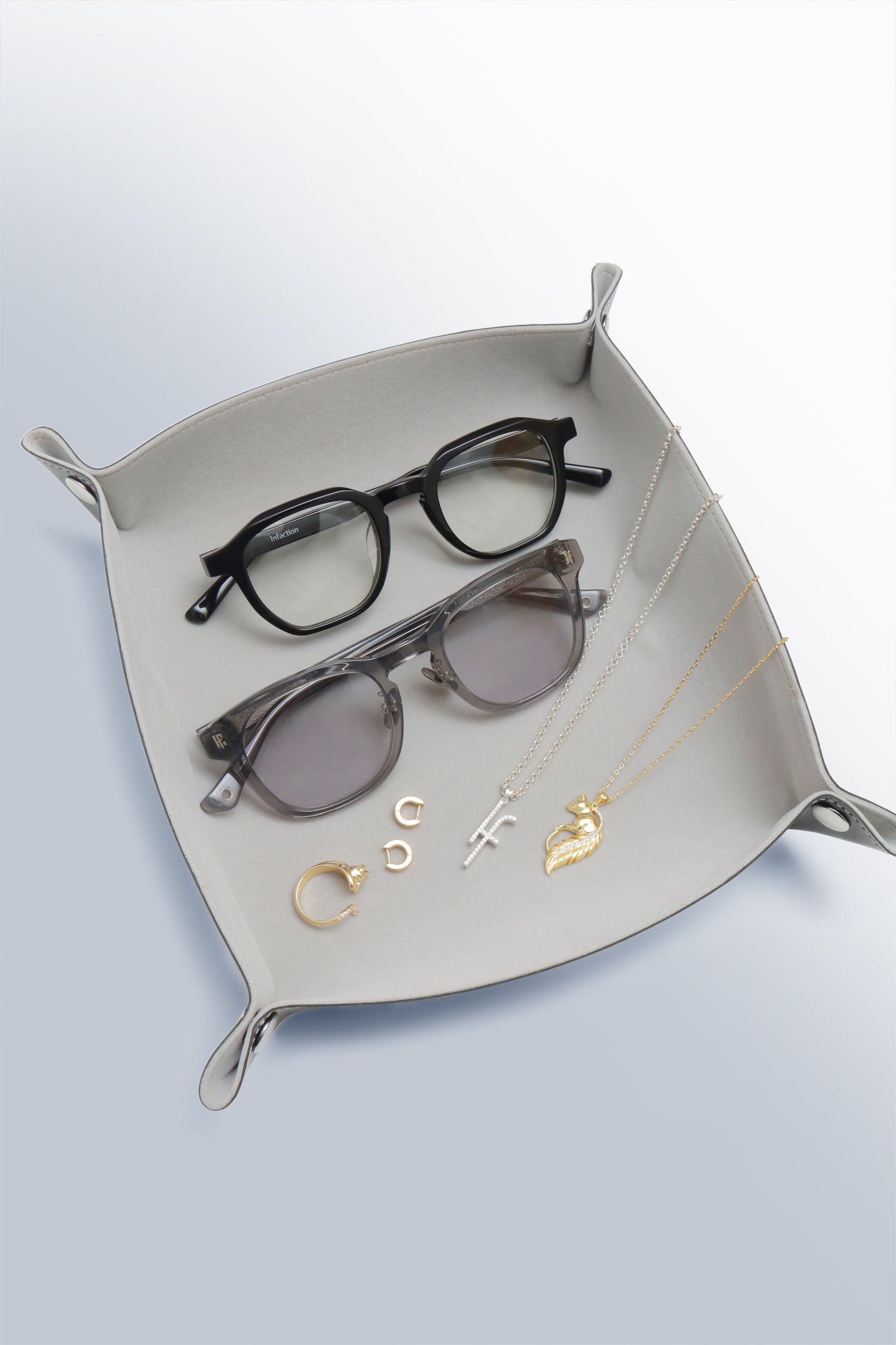 お気に入りのピアスを合わせたり、その日のスタイルに合わせてアレンジしたりと、自分らしいカスタマイズができるのも魅力のひとつ。赤いオリジナルのサングラスケースもセットになっています。
