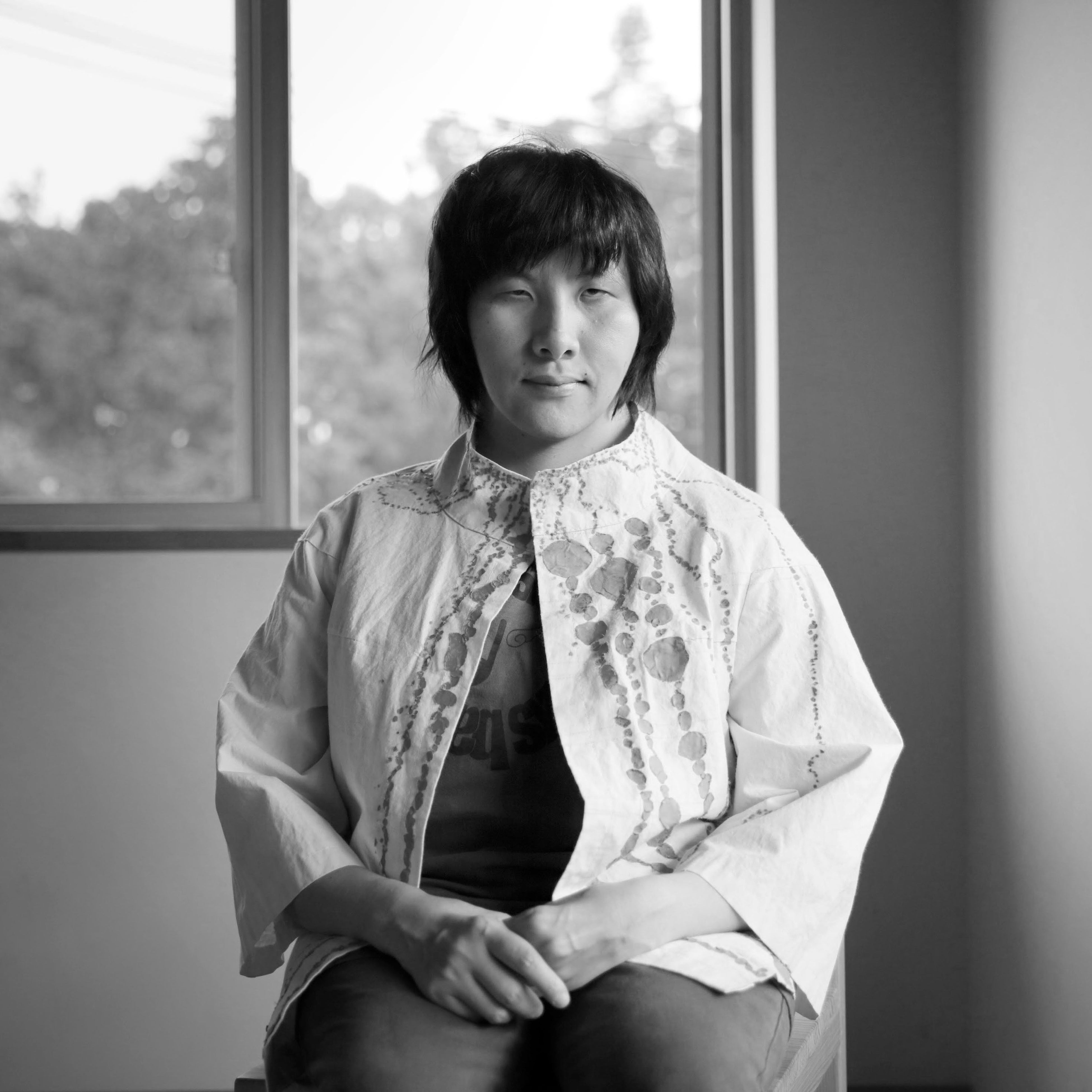 たくさんの人とコラボするのが好きで、ダンス、朗読、コラージュなどを行う。2015 年、素材としてのトワル(服)に出会う。2016 年 5 月よりトワル作品「雨」に取り組んで以来毎日、フェルトを丸い形に切り、トワルに貼ることを続けている。ワークショップに出向いた際に、道を間違えたスタッフにツッコミを入れるのは彼女の役目。好きな武将は「多すぎて選べない」。趣味は読書(歴史関係)。
