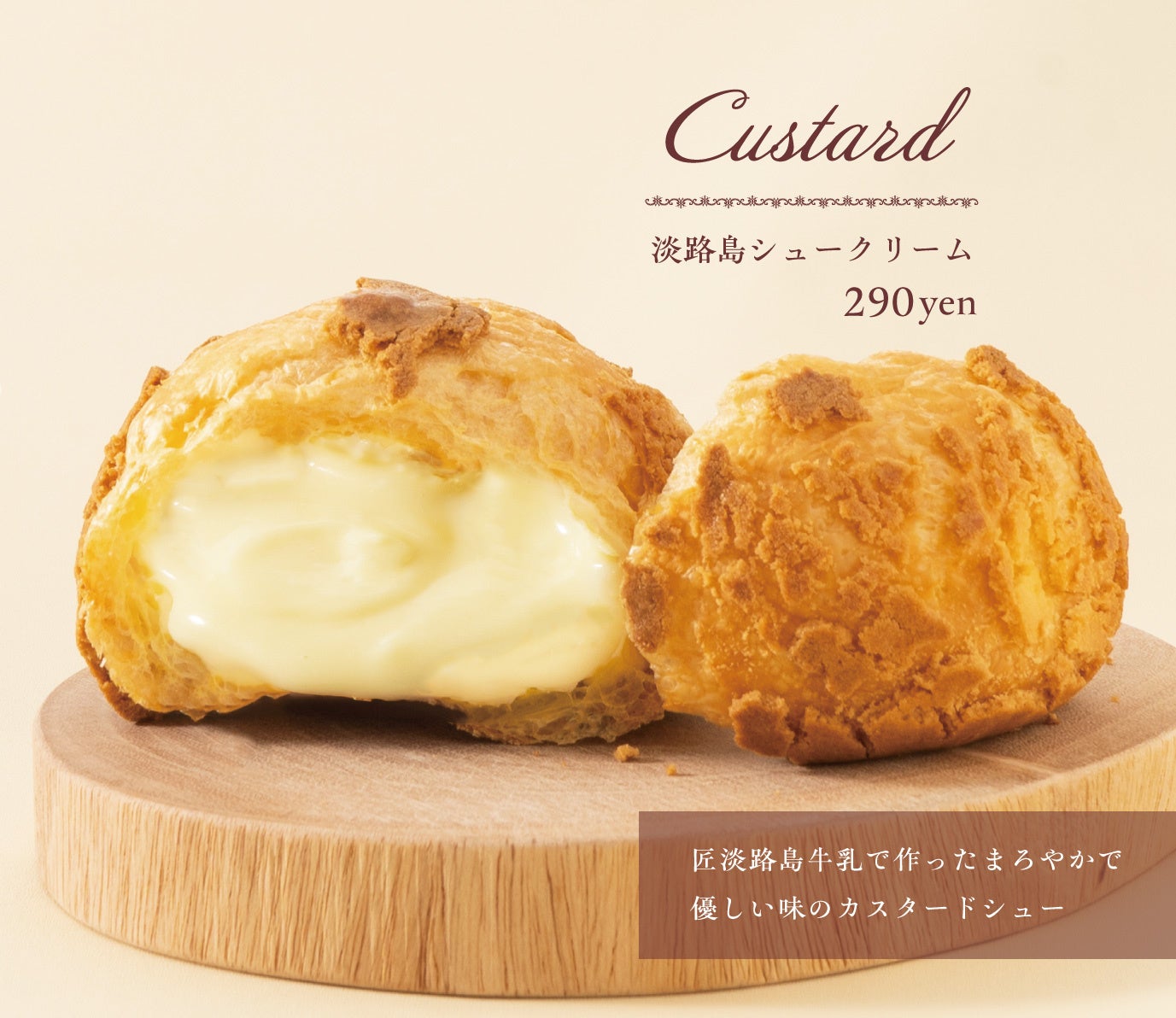 淡路島の自然が育んだ「匠淡路島牛乳」を贅沢に使用し、まろやかで優しい味わいに仕上げた特製カスタードシュークリームです。コクがありながらも軽やかな口当たりのカスタードは、ひと口食べればふわっと広がるミルクの香りと、やさしい甘さが心までとろけるよう。外側のシュー生地は、香ばしく焼き上げたサクふわ食感。中のクリームとのバランスが絶妙で、最後まで飽きずに楽しめる一品です。素材の良さをそのまま生かした、どこか懐かしく、そして贅沢な味わいのシュークリーム。自分へのご褒美にも、大切な人への手土産にもぴったりの、淡路島ならではのやさしいスイーツです。
