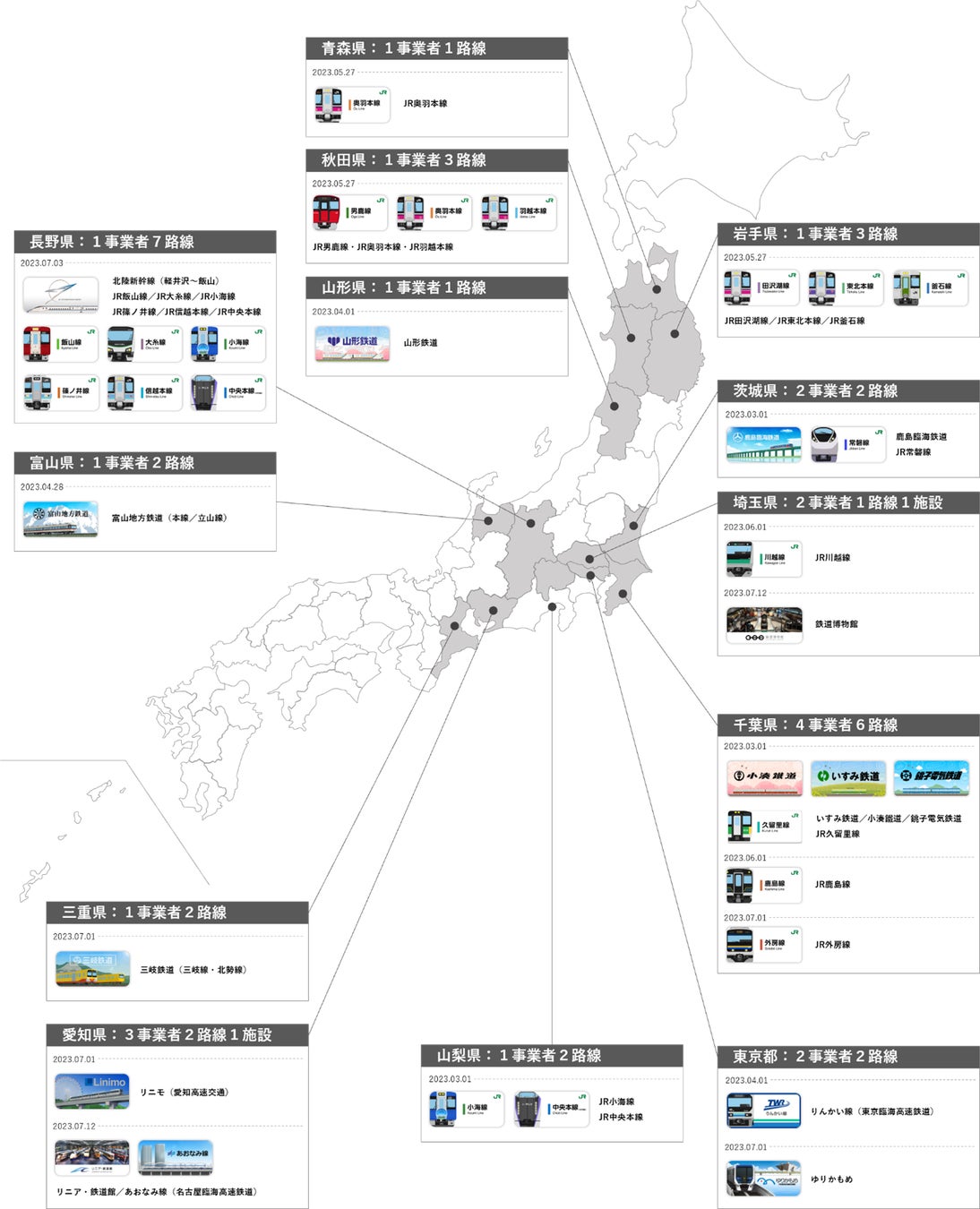 今後も、多くのお客さまに鉄道でのお出かけを楽しんでいただけるよう、鉄道事業者等との連携により対応エリアの拡大に取り組んでまいります。
