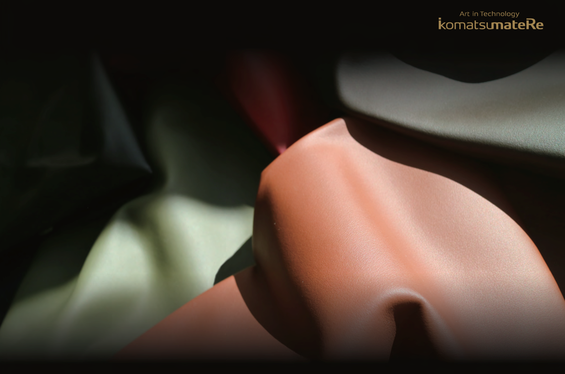 小松マテーレ独自の加工技術により、従来の合皮と比べて弾力感、なめらかさ、しなやかさがアップした素材です。