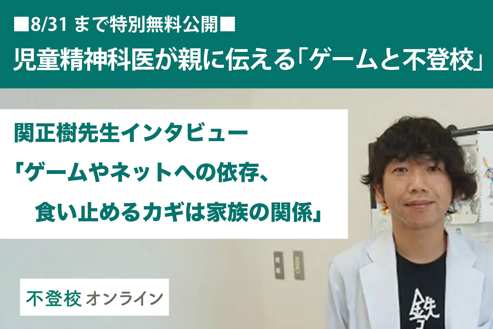 【不登校の親向け記事を特別無料公開】児童精神科医・関正樹氏が伝える「ゲームと不登校」〜ゲームやネットへの依存、食い止めるカギは家族の関係〜