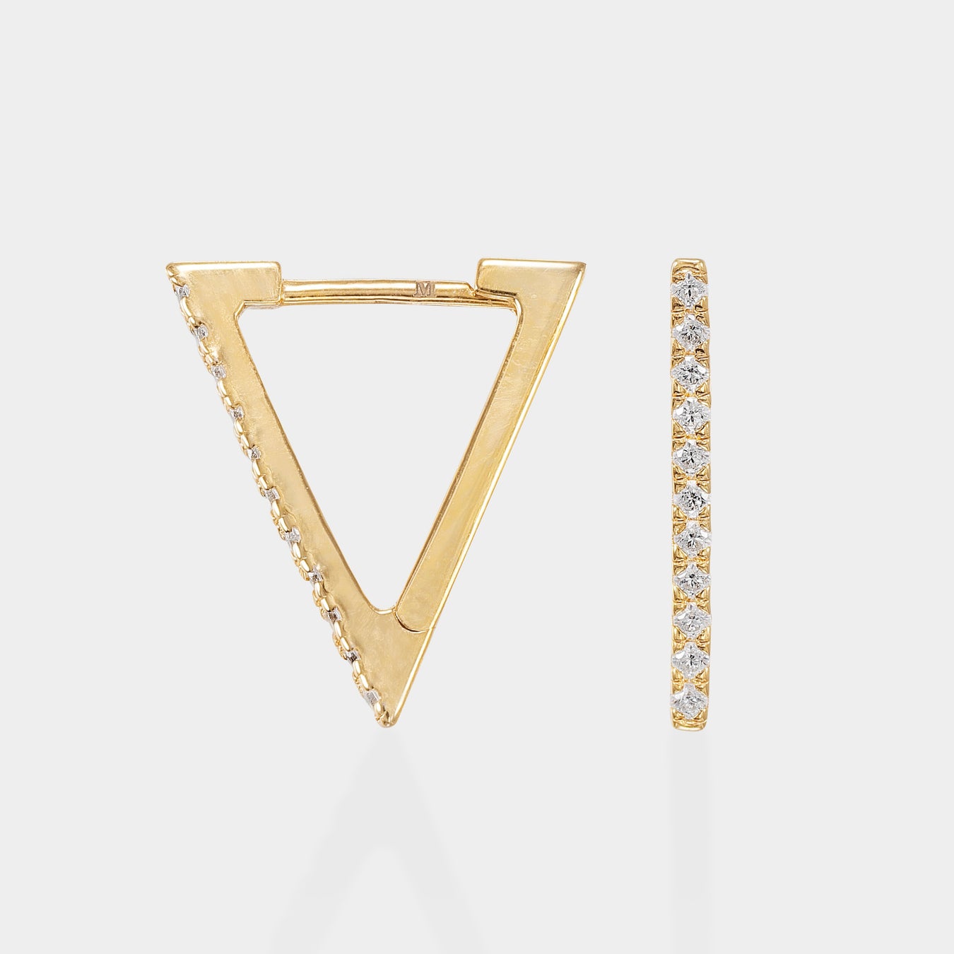 カッティングが美しいV字ラインに、ダイヤモンドをあしらったピアス。シャープなフォルムに白いダイヤモンドが煌めき、耳元で上品な存在感を放ちます。