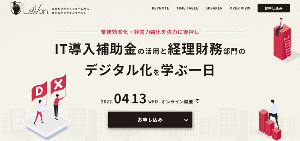 | 名称 | Less/on.(レッスン)- IT導入補助金の活用と経理財務部門のデジタル化を学ぶ一日 -業務効率化・経営力強化を強力に後押し |