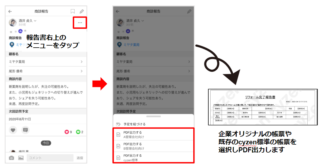 スマホで簡単に使える業務支援アプリ「cyzen」、帳票出力機能をリリース